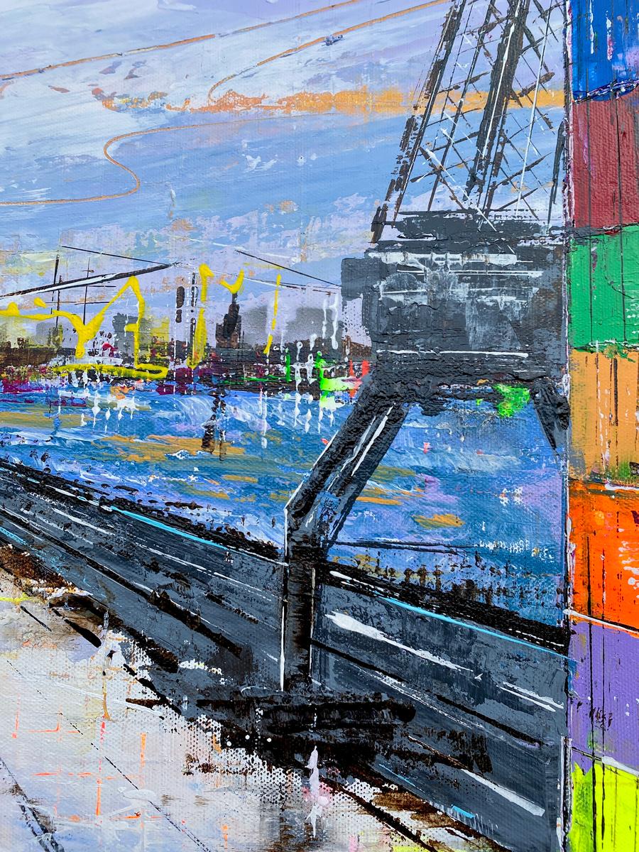 Steel & Sky – Handle With Care V formuliert eine Haltung innerhalb industrieller Ordnung. Der eingearbeitete Titel wirkt wie eine Anweisung – und zugleich wie ein Appell. Zwischen Struktur, Verdichtung und systematischer Organisation erscheint Verletzlichkeit nicht als Schwäche, sondern als bewusste Setzung. Subtile Zeichen von Menschlichkeit bleiben im System eingeschrieben – klein, beinahe übersehbar, und gerade deshalb wirksam. Sie bilden eine leise Gegenkraft in einem Raum, der auf Funktion ausgerichtet ist. Als Auftakt der Serie Steel & Sky markiert das Werk die zentrale Spannung: Wie gehen wir mit Systemen um, die uns tragen – und wie behutsam behandeln wir das, was in ihnen fragil bleibt?