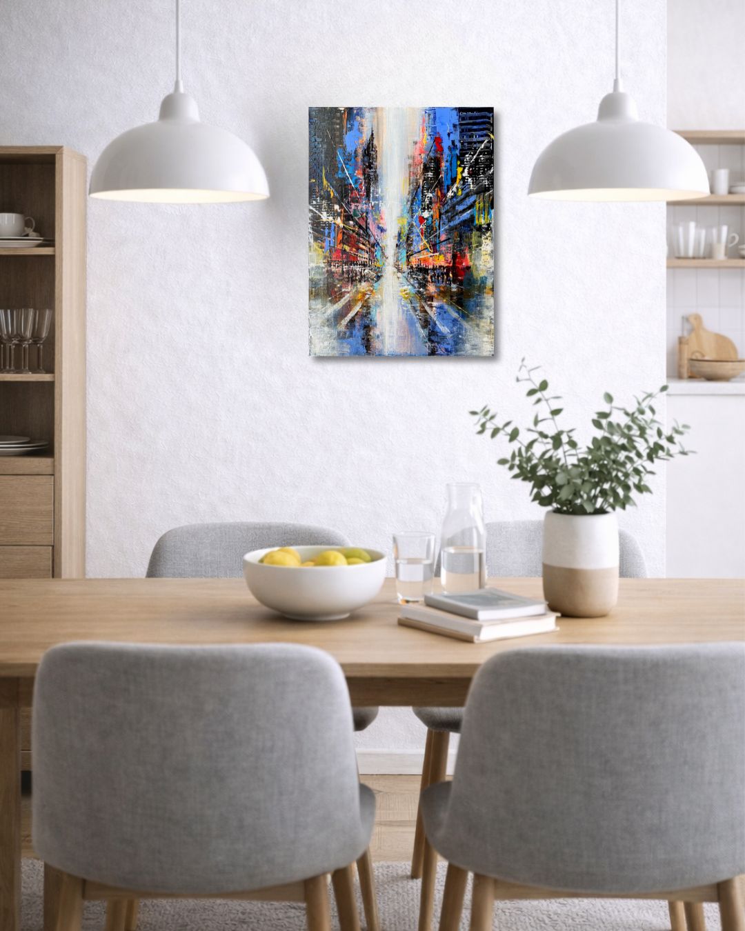 Urban Axis – Concrete Pulse II entwickelt sich aus der Verdichtung urbaner Strukturen nach dem Regen. Reflektierende Flächen, überlagerte Linienführungen und klar gesetzte Perspektiven formen eine vielschichtige Komposition. Im Malprozess treffen konstruktive Ordnung und freie Eingriffe aufeinander und erzeugen ein Spannungsfeld zwischen architektonischer Stabilität und dynamischer Bewegung. Inspiriert von New York nach einem Gewitter.